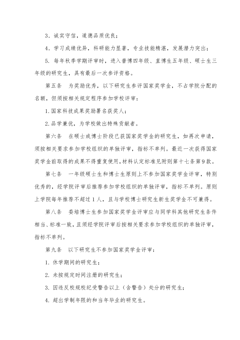 机械工程及自动化学院研究生国家奖学金评审实施细则